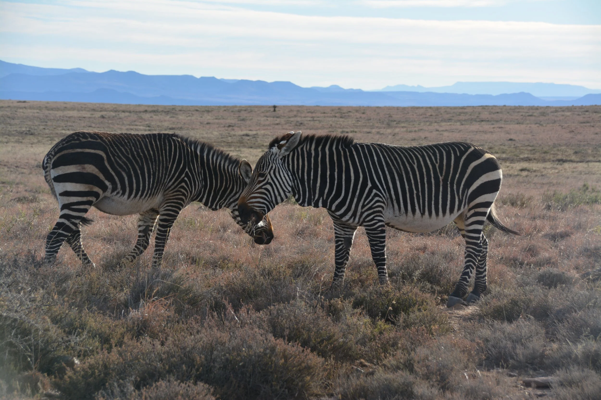 We rijden verder door de Karoo naar het zuiden. We stoppen in Mountain Zebra National Park. Dit kleine park is ooit opgericht om de bijna uitgestorven mountain zebra te beschermen. Inmiddels zijn ook vele andere dieren in het park te zien waaronder leeuwen en neushoorns.