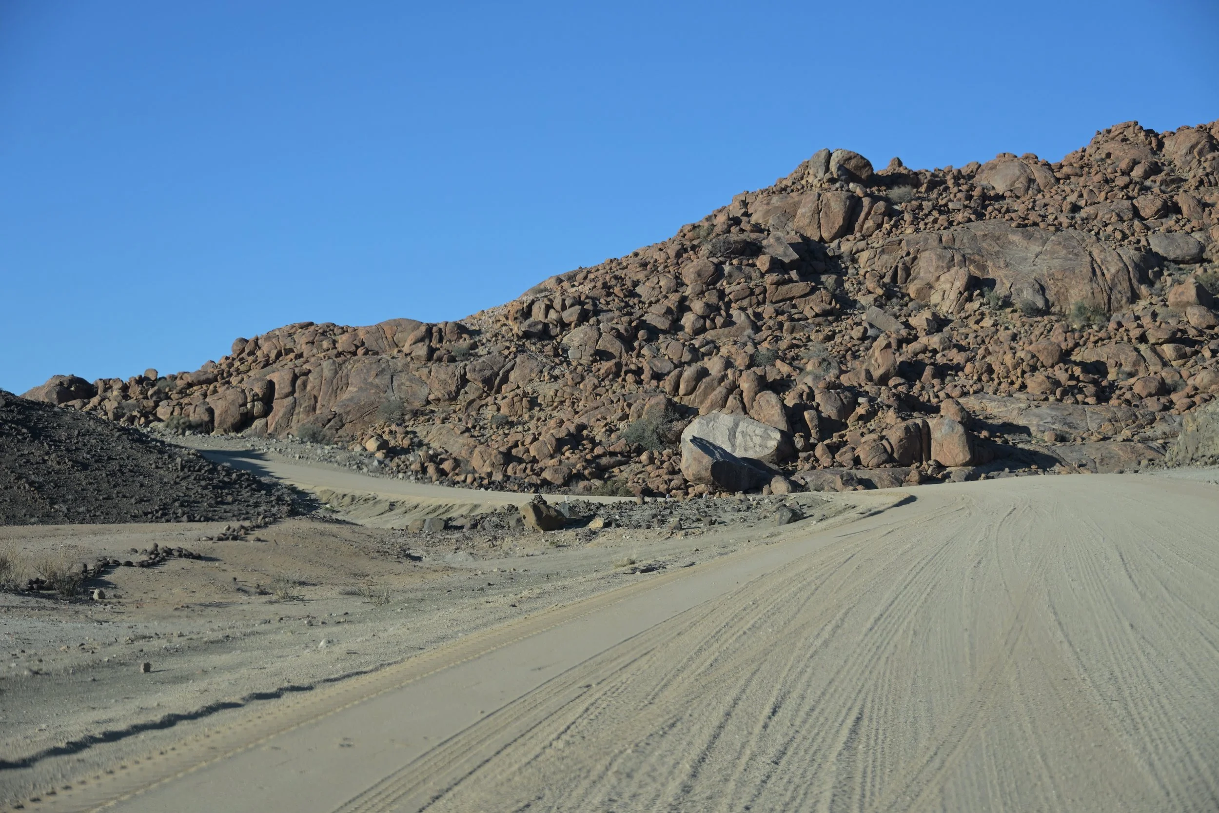 In Zuid-Afrika rijden we vaker op verharde wegen. In Namibie zijn de meeste wegen onverhard.