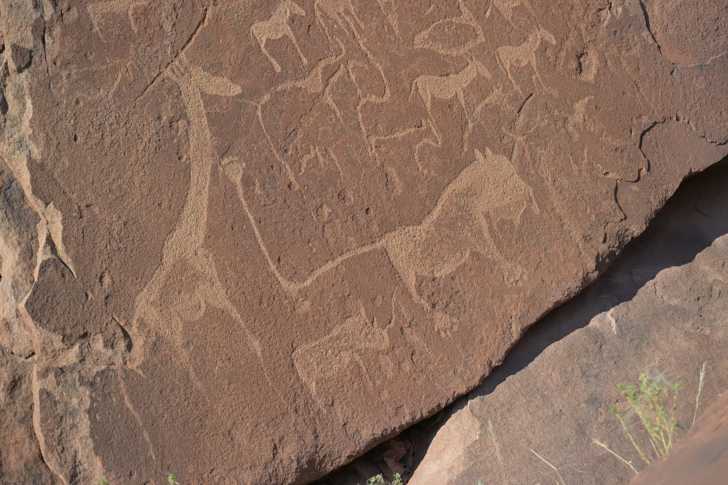 We vertrekken uit Swakopmund op weg naar Twyfelfontein. We rijden door Damaraland, het is duidelijk een gebied waar veel mensen arm zijn. Onder begeleiding van een gids bezoeken we een plek waar de SAN veel rotstekeningen hebben gemaakt. Ze dateren van 300 v chr. tot ongeveer 1800. Heel bijzonder.